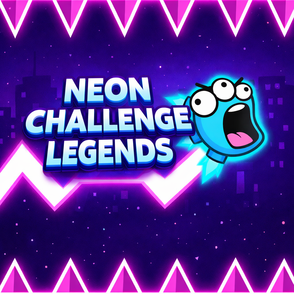 Neon Challenge Legends is a fast-paced arcade platformer where precision and reflexes are the keys to survival. In this game, you will control a small monster moving through neon-lit levels filled with dangerous traps. Your objective is simple: reach the finish line without touching any obstacles. The game uses a simple one-button control system that creates a surprisingly challenging experience. Press to make your character rise and release to let gravity pull it down. Mastering this balance allows you to dodge hazards, navigate tight spaces, and collect hidden stars placed in risky locations.